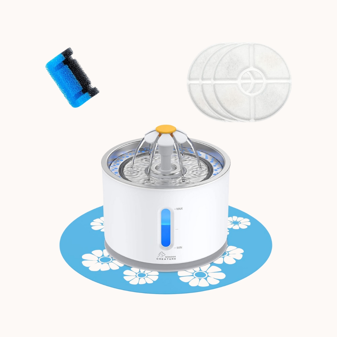 • Circulating filtration system: A replaceable charcoal filter removes dirt and food particles, and a pre-filter sponge designed to catch hair and debris. This system ensures that your beloved pets have access to fresh, clean water.